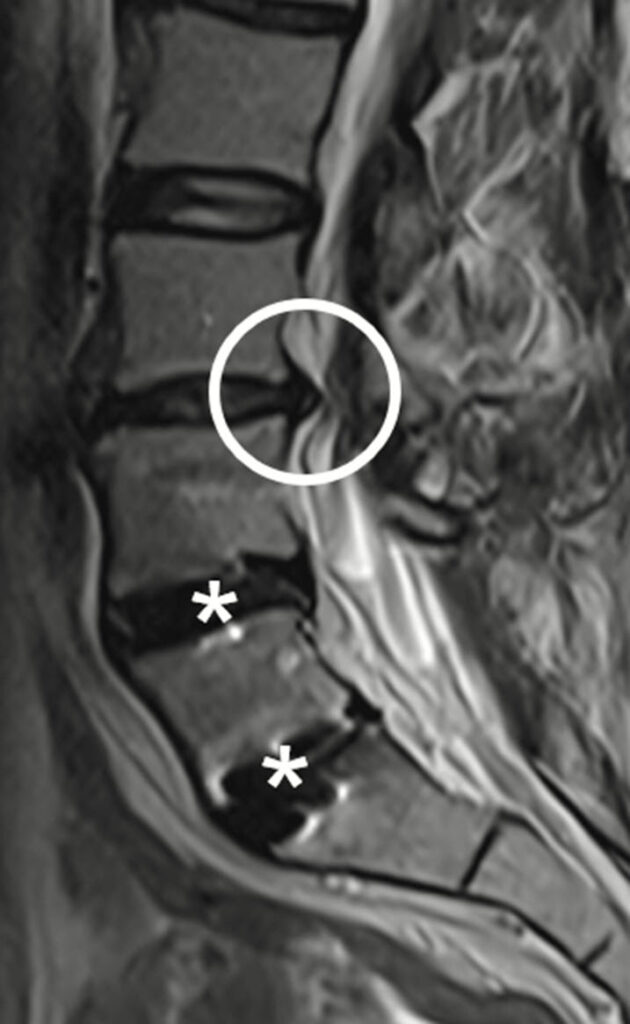 → Abbildung Wirbelsäule und des Iliosakralgelenks – nach Spondylodese